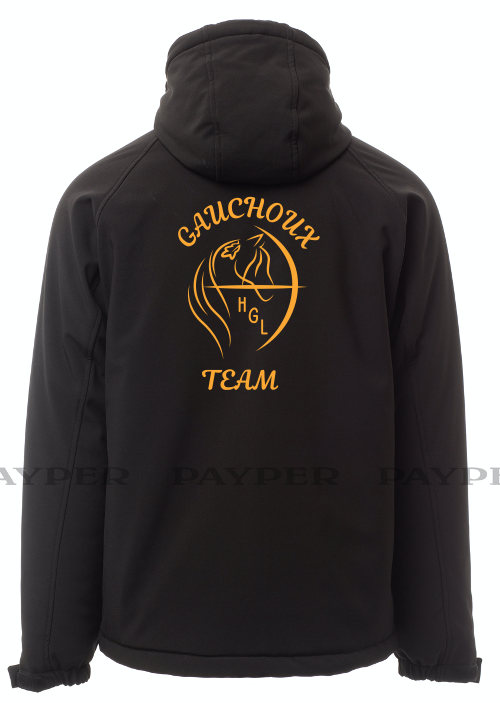 WP 8000 mm H2O, WVT 5000 g/m2 24h. Soft-shell 3 couches, pour enfant, manches raglan, fermeture par zip SBS avec ruban et curseur en métal. Capuche profilée à deux coutures et coulisse avec stoppeur. Poignets élastiqués, réglables par serre-poignets à fermeture autoagrippante. Deux poches extérieures avec zip.